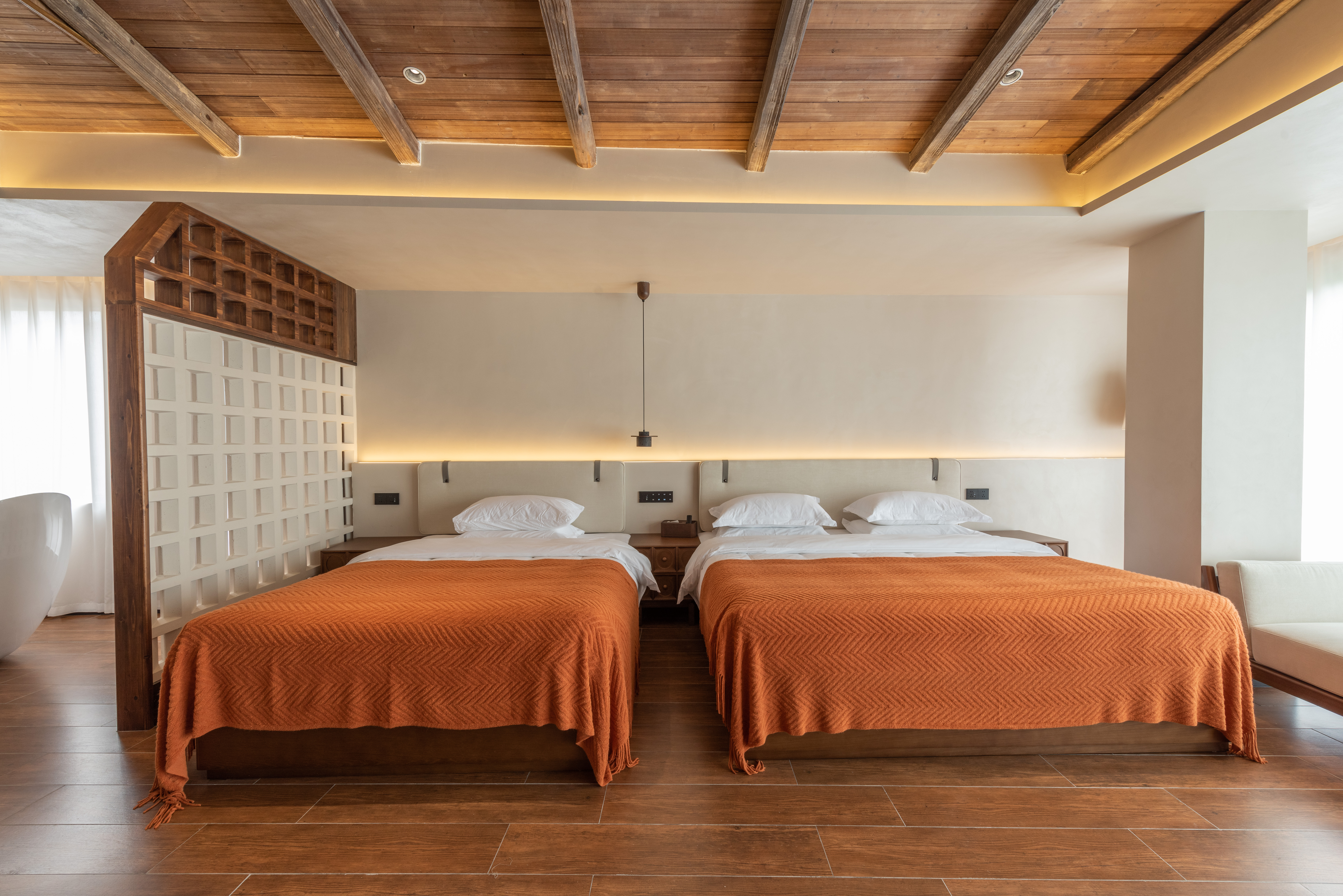 澄观·茶艺景观双床房[阳台+慕思床垫+投影+浴缸+智能]
